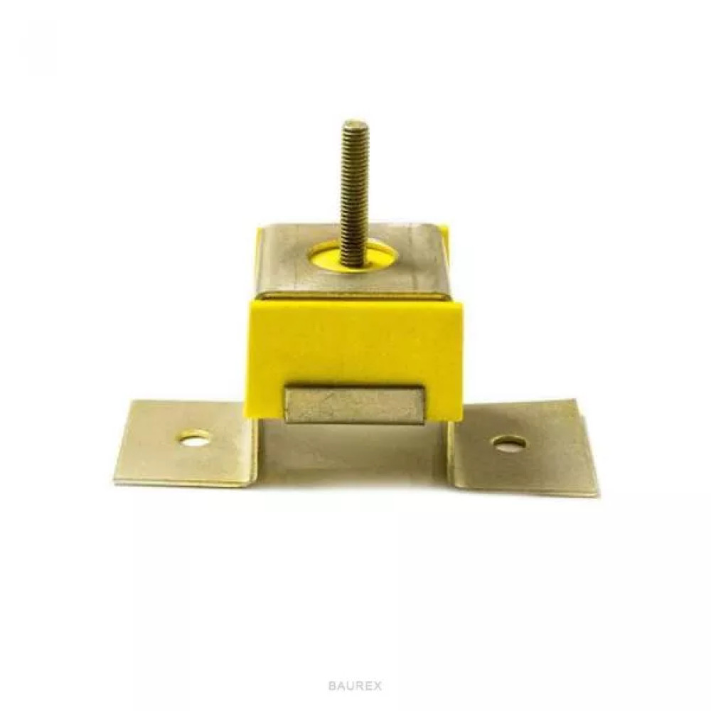 Конструкция потолочного подвеса Виброфлекс 1/30А представляет собой винтовое крепление М6, соединённое с металлической пластиной с отверстиями для фиксации на несущей поверхности. Демпфирующий элемент изготовлен из микропористого полиуретана. Для закрепления профиля можно применять обычный прямой или регулируемый подвес, соединив его с Виброфлекс 1/30А при помощи дополнительного крепежа.